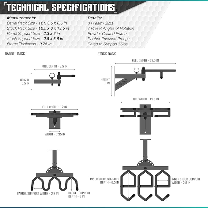 - [ULTRA HEAVY-DUTY] - Rated to Hold up to 75 Lbs. Fully Customizable Rack Designed to Hold Rifles in Different Length.