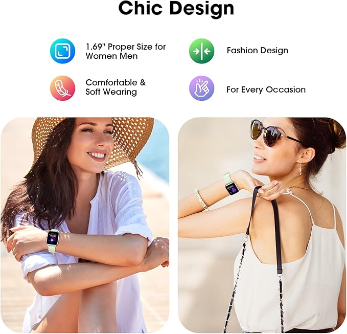 - 【User Friendly Design】This smartwatch features has a 1.69 inch color display, allowing all settings and operations to be easily completed via the responsive touch screen. Its convenient operation is especially friendly for both senior and teenager!