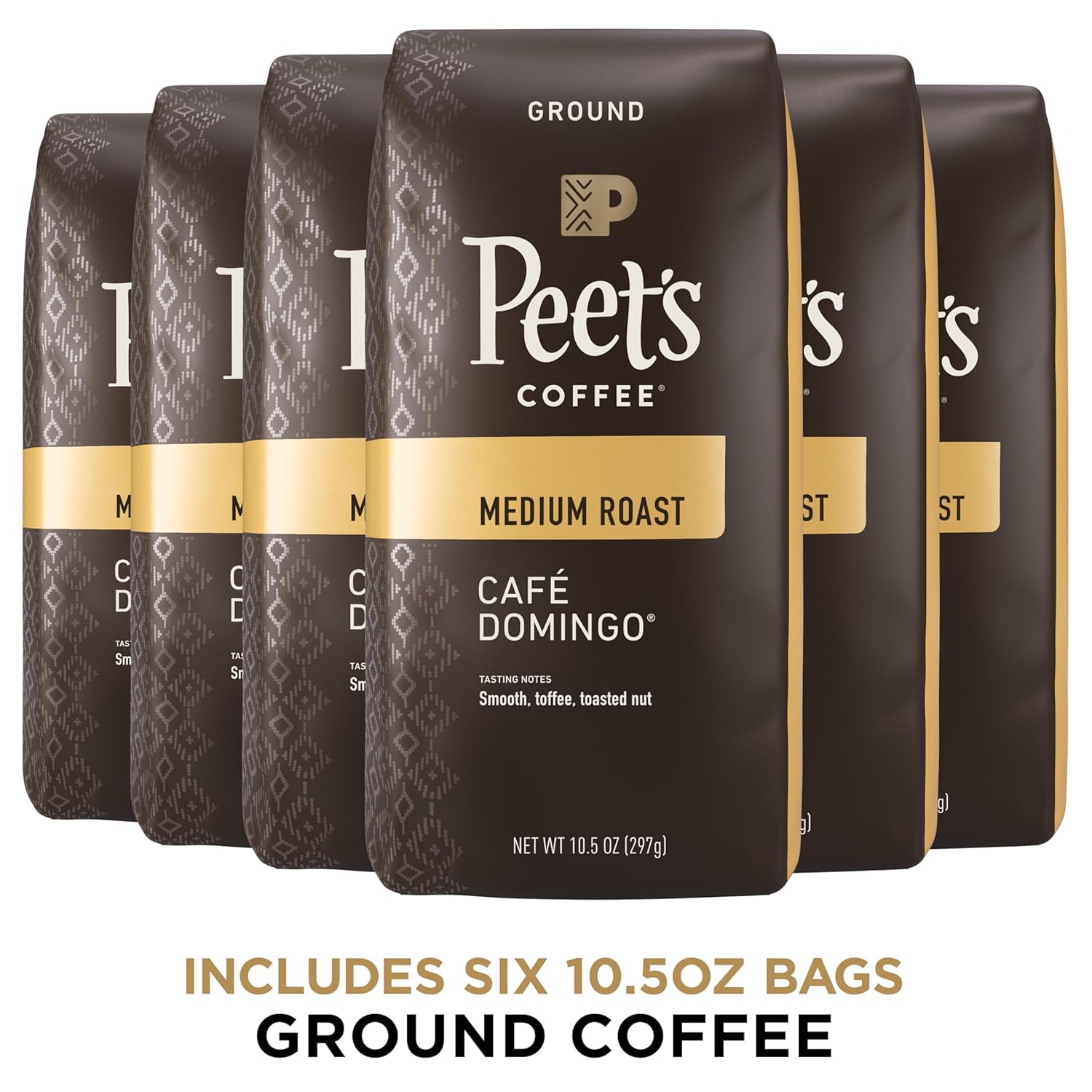 Peet's Coffee, Medium Roast Ground Coffee - Café Domingo 63 Ounces (6 Bags of 10.5 Ounces)