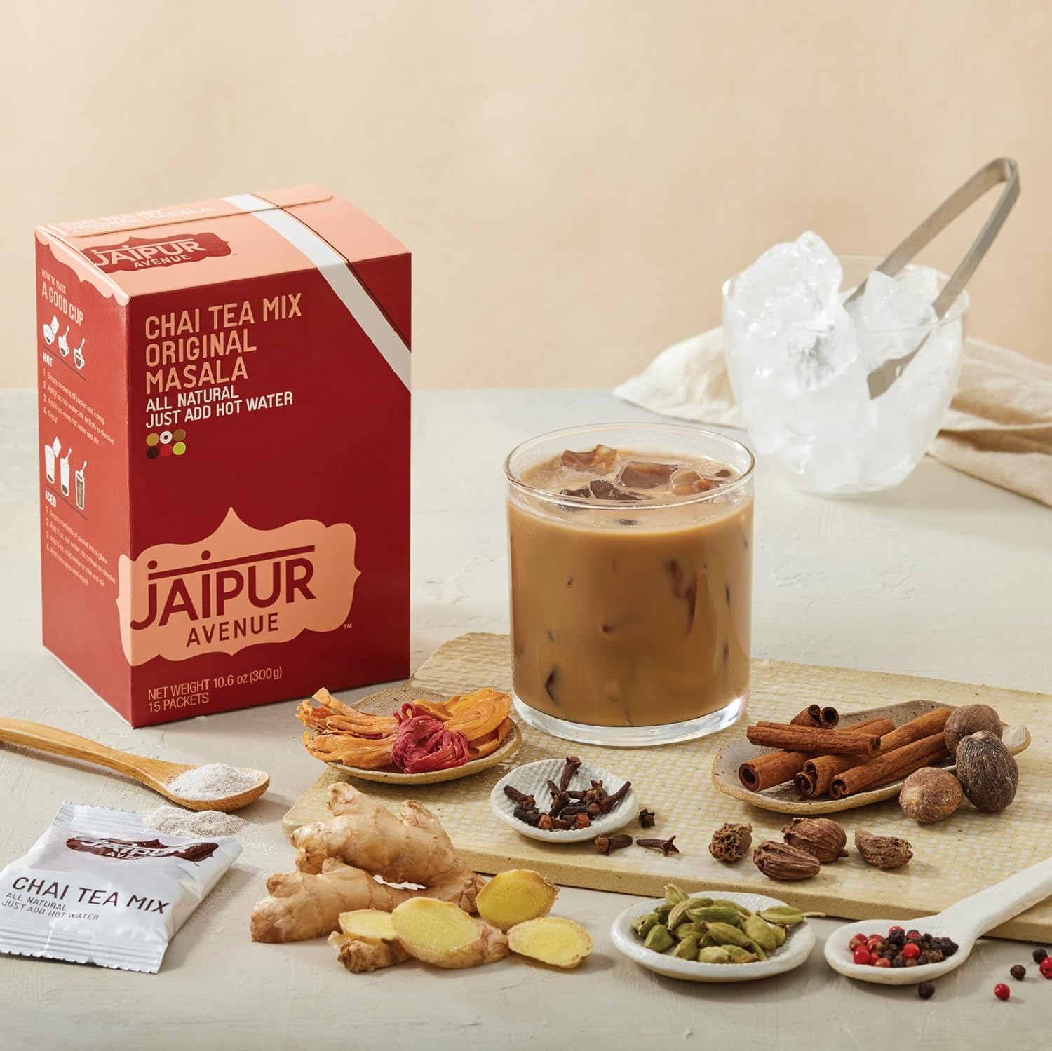 - INSTANT MASALA CHAI, ANYTIME, ANYWHERE: Whip up a delicious cup of masala tea in seconds with gluten-free masala chai tea mix by Jaipur Avenue. Designed for convenience without compromising on flavors, just add hot water for a heartwarming chai or mix with chilled milk and ice for a refreshing summer treat. Made with Assam black tea, masala, premium dry milk, and natural cane sugar, this tea mix by Jaipur Avenue is the ideal masala chai latte mix to make chai tea latte in an instant.