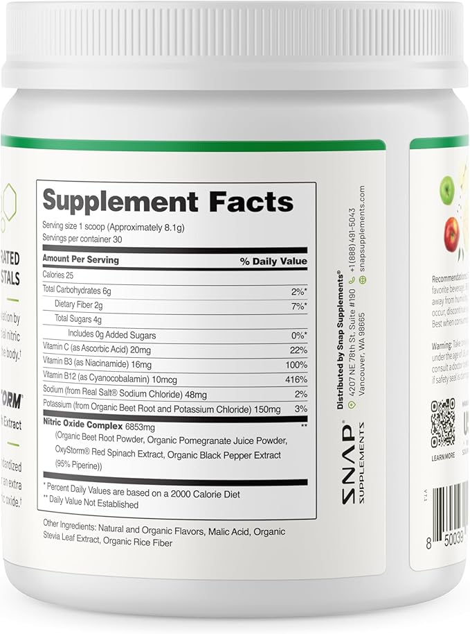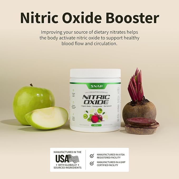 - HEALTHY HEART SUPPORT: Maintain peak performance and a healthy lifestyle with Snap Supplements' Beetroot Powder. Our formula is packed with nitrate-rich ingredients to promote nitric oxide levels, supporting healthy circulation and overall heart health.