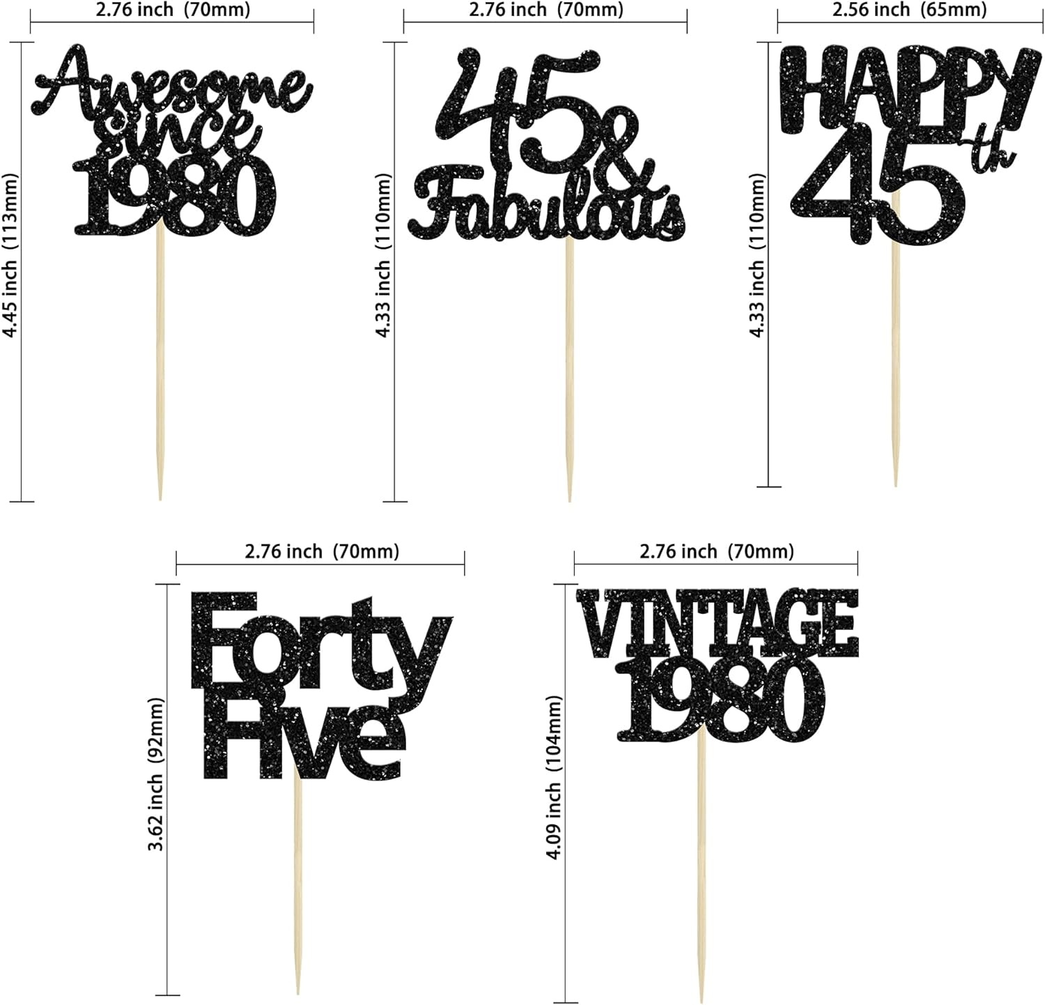 Gyufise 30 Pack Black Glitter 45th Birthday Cupcake Toppers Vintage 1980 Awesome Since 1980 45 Fabulous Cupcake Picks 45th Birthday Wedding Anniversary Party Cake Decorations Supplies