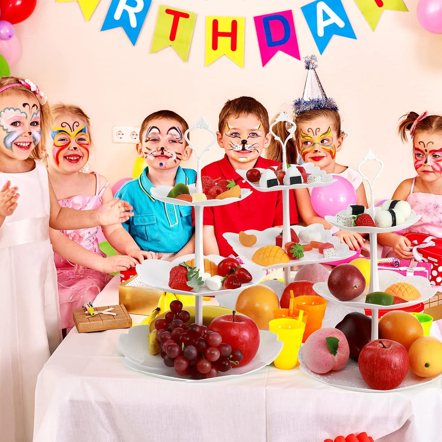 Sawysine 6 Pack 3 Tiers Dessert Stand Plastic Cupcake Stand Serving Trays Cupcake Display Stand Cookie Tray for Party and Platter for Home(White)