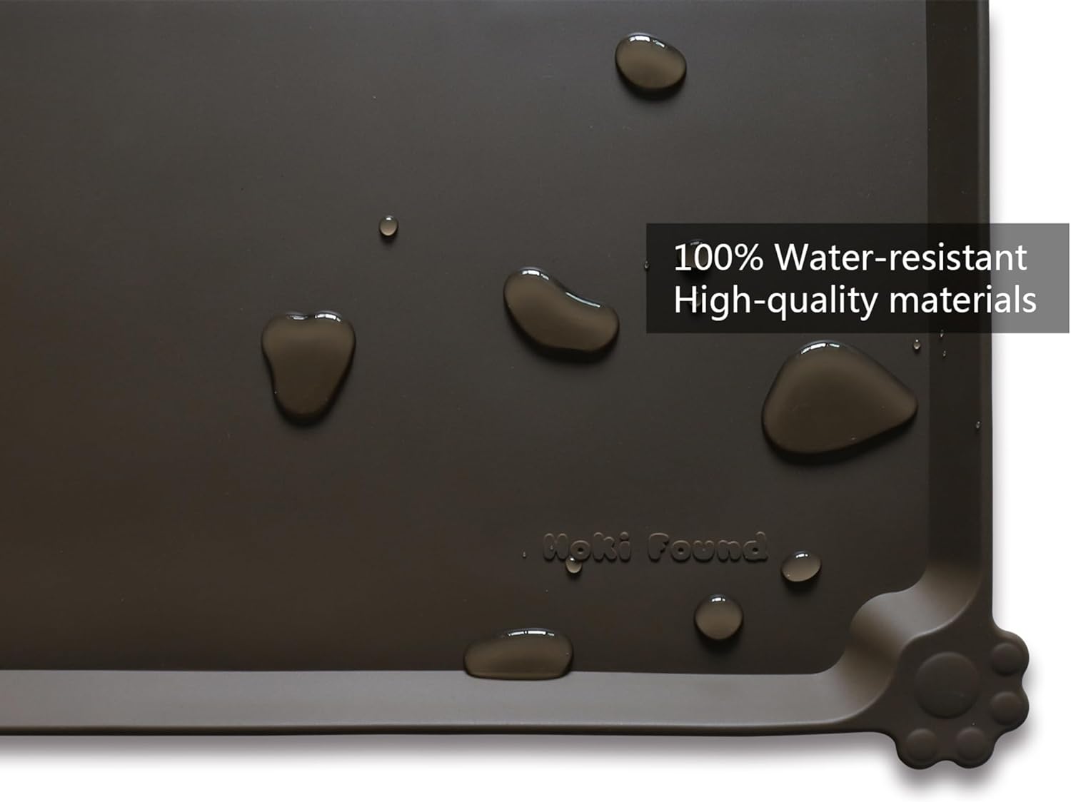 Hoki Found XX-Large Silicone Pet Food Mats Tray - Non Slip Pet Dog Cat Bowl Mats Placemat - Dog Pet Cat Feeding Mat - Waterproof Dog Cat Food Mats -Pet Water Mats for Carpet - Coffee