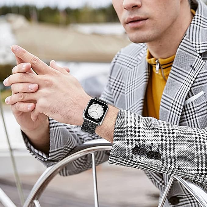 Smart Watch for Men Women for Android iOS Phones Compatible with iPhone, HCHLQL Full Touch Screen Fitness Tracker with Call/SMS/Heart Rate/Blood Oxygen Monitor/Pedometer/Nylon Sport Bands (Black)