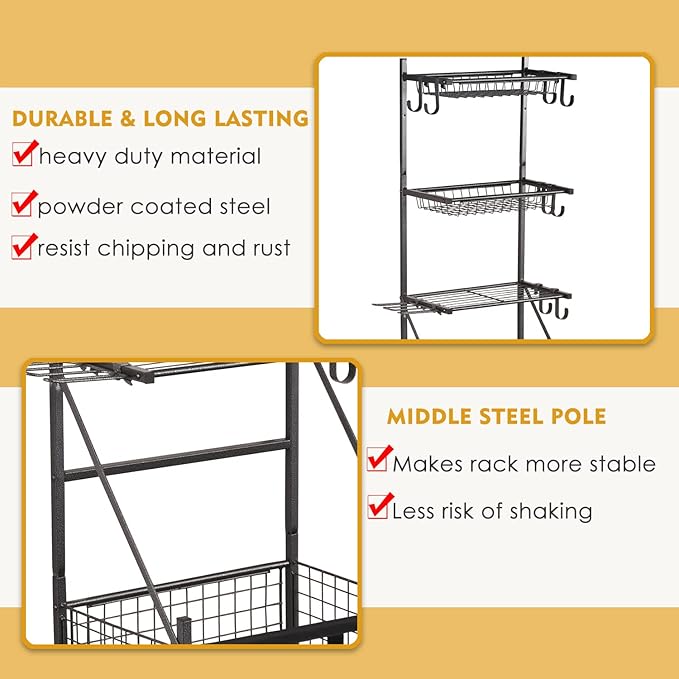- 【DURABLE & LONG WORKING LIFE ROLLING CART】- The Sports Ball Storage Rolling Cart is constructed out of heavy duty powder coated steel to resist chipping, peeling and rust, which ensures a long lasting working life. The middle steel pole makes the storage organizer more stable and decreases the risk of shaking