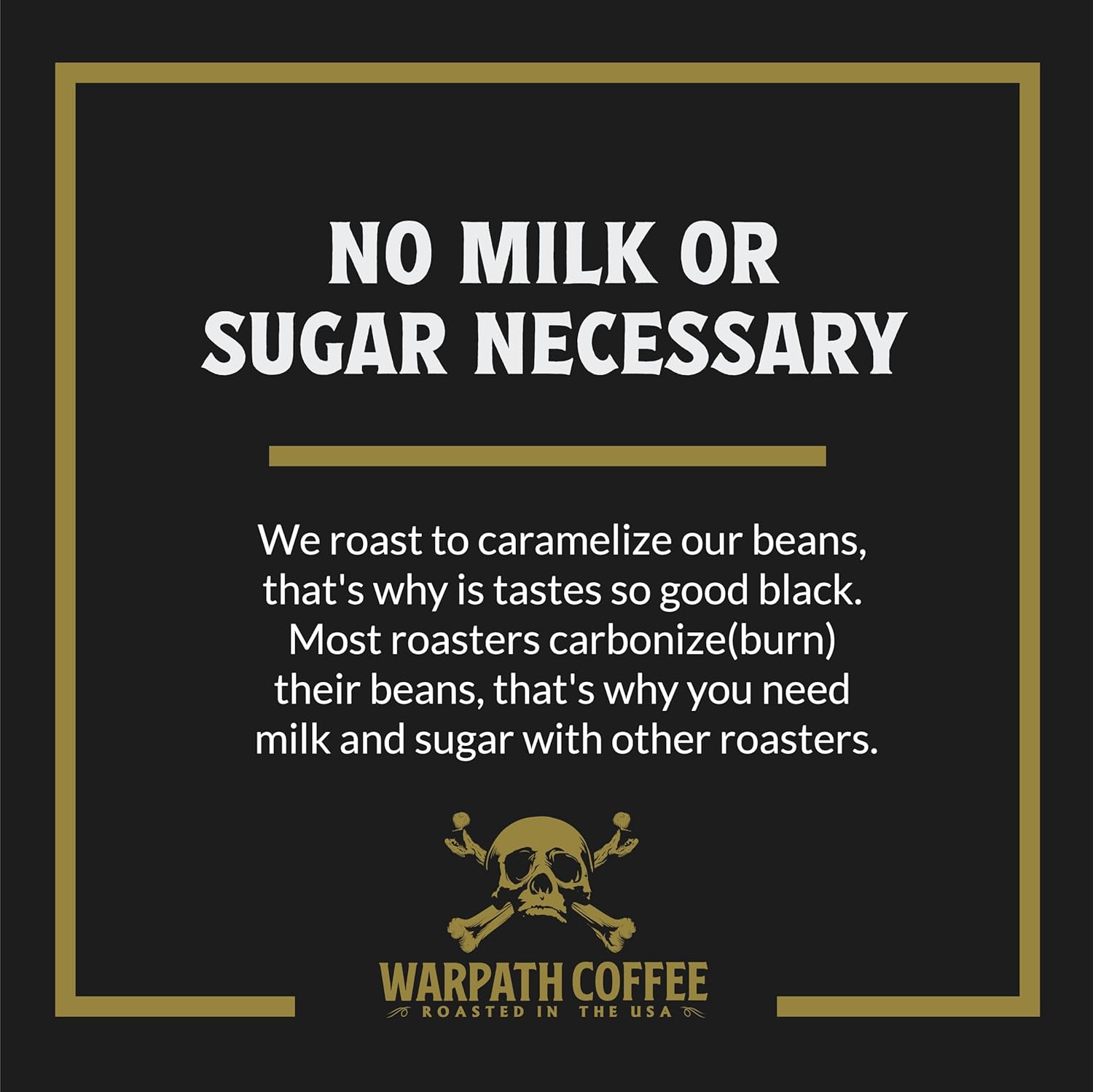 - NO MILK OR SUGAR NEEDED: Enjoy bold flavor without milk or sugar. Our medium roast whole bean coffee is smooth, never burnt, with natural taste and aroma that stand strong on their own.