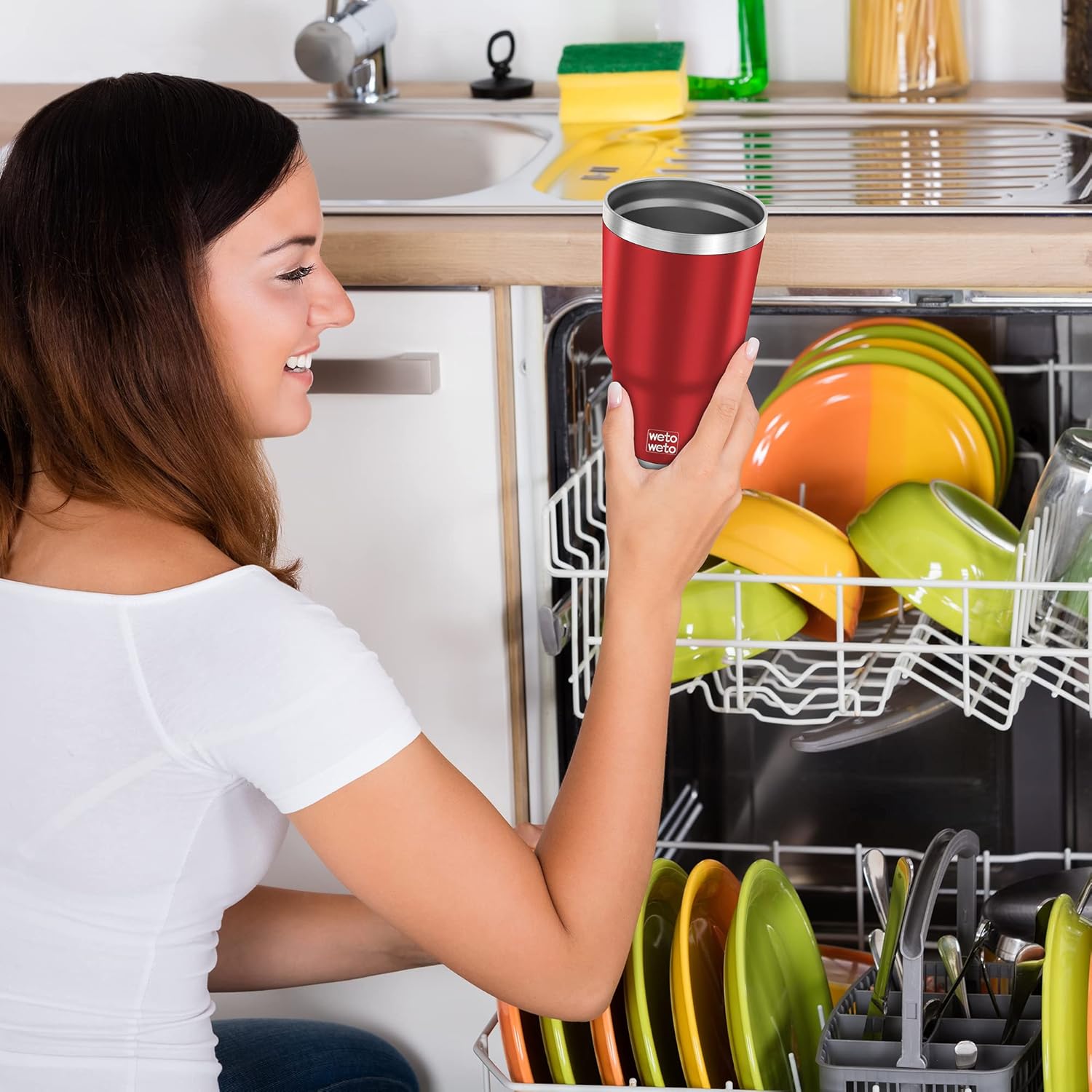 WETOWETO 30 oz Insulated Tumbler With 2 Lids and 2 Straws, Stainless Steel Double Vacuum Coffee Tumbler Cup, Powder Coated Travel Mug for Home, Office, Travel, Party (Harvest Red, 1 Pack)