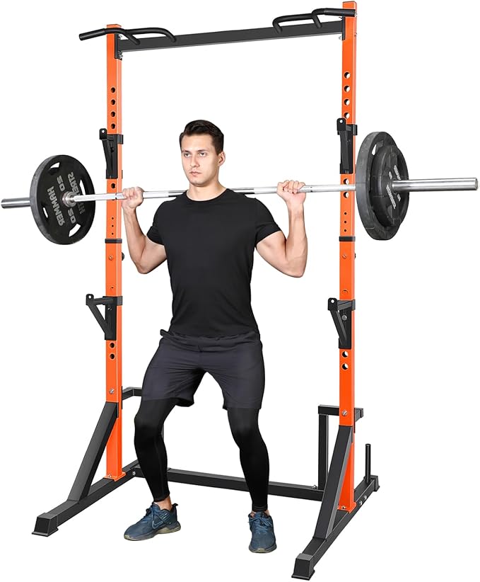 CANPA Multifunction Power Rack with Pull up Bar, Heavy Capacity and Adjustable Squat Stand Rack for Home Gym Equipment, Power Rack Cage