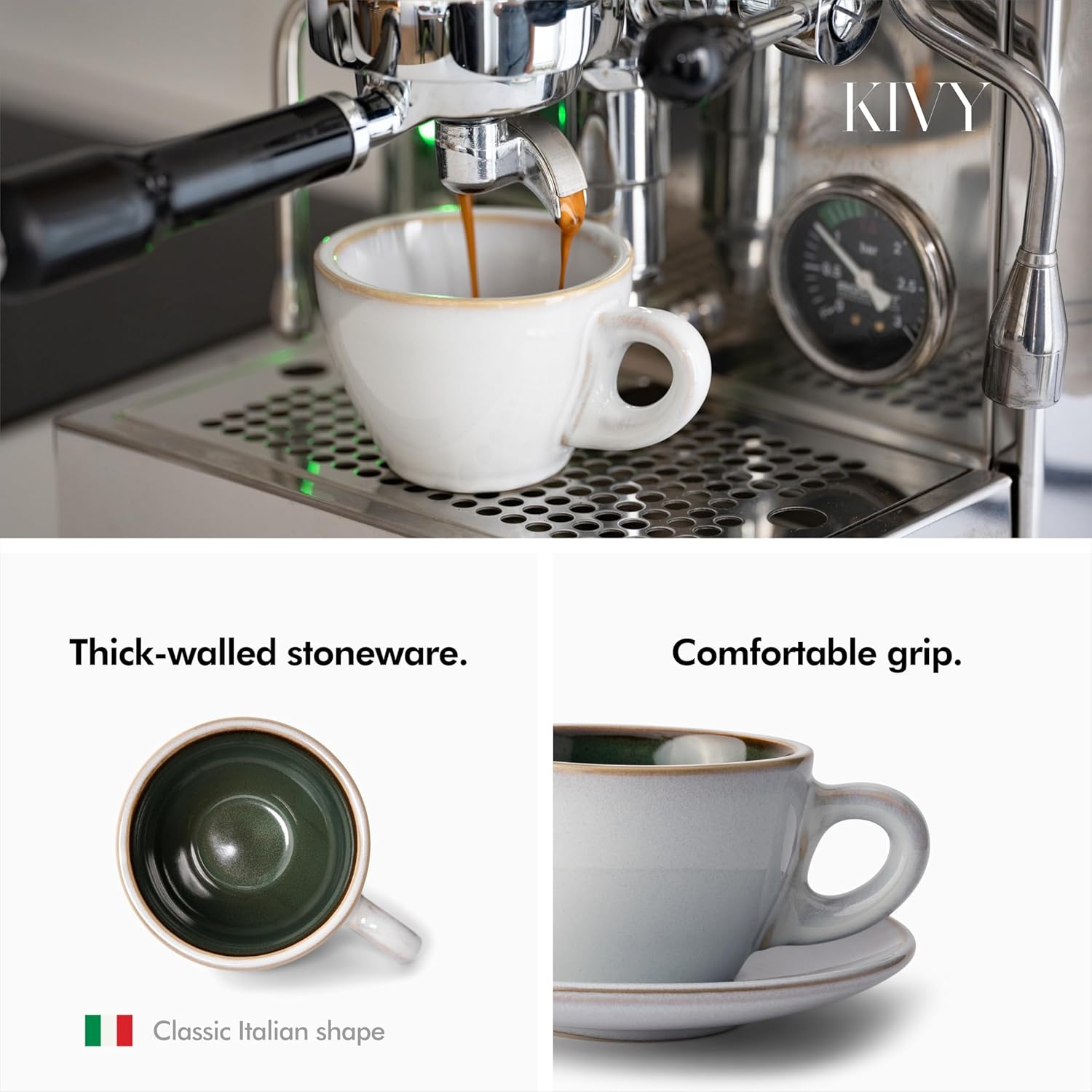 KIVY Cappuccino cups [4x 8oz] - Thick-walled stoneware cappuccino cup set for latte art - Latte mugs - Latte cup set - Small coffee cups - Latte art cup - Ceramic latte cup and saucer set of 4