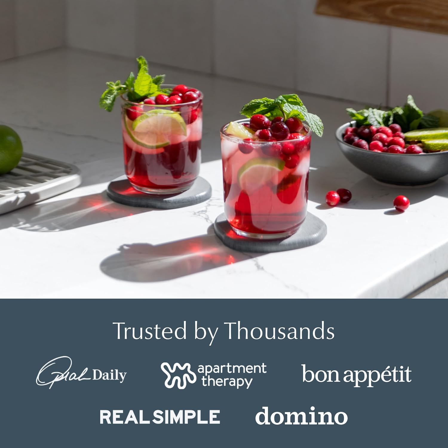 - HOME MUST HAVES: Ideal for cold or hot drinks, our drink coasters guard against scuffs, scratches, splashes, and the dreaded water ring. Bid farewell to damp tile coasters and wet countertops, and enjoy the convenience and protective power our stone coasters offer.