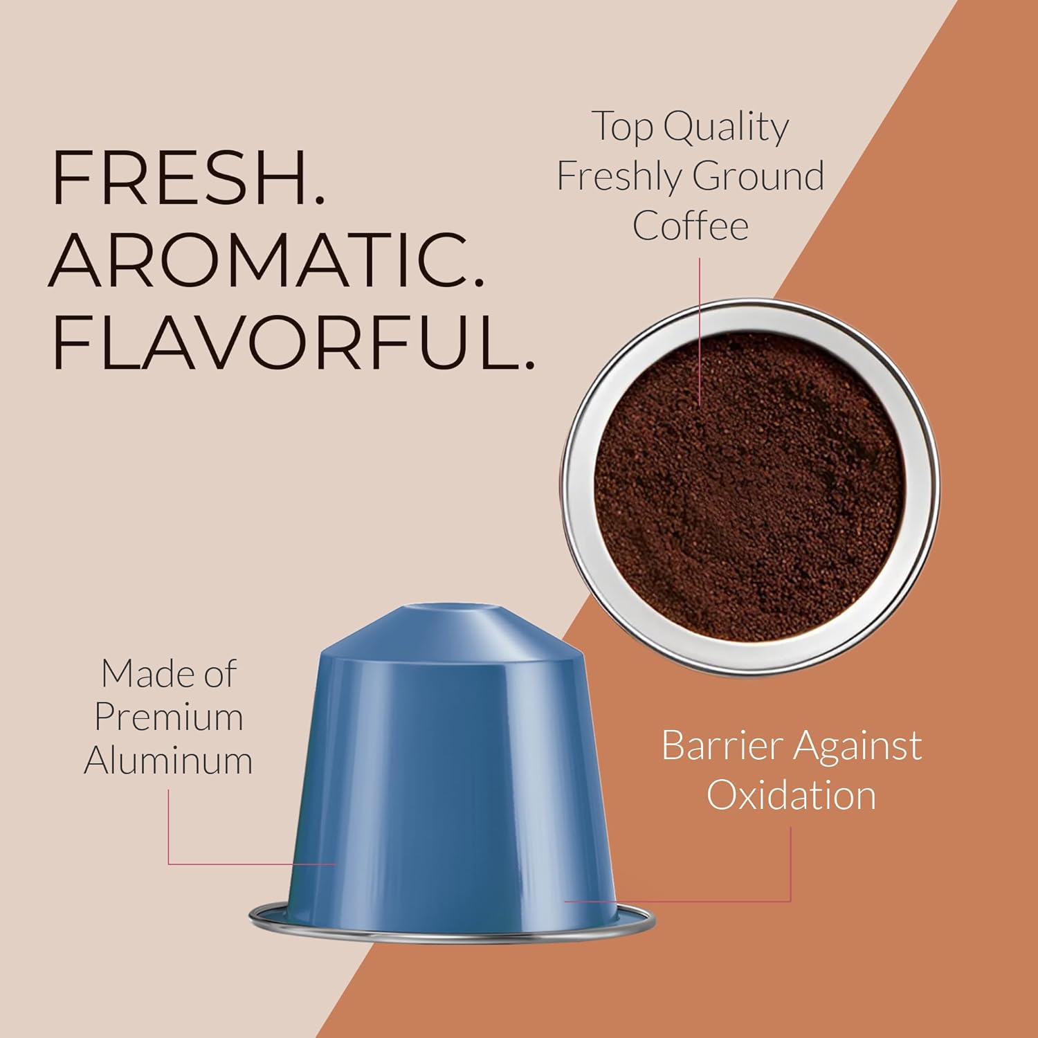 - Aluminum Espresso Capsules: Crafted with premium aluminum, our espresso pods preserve freshness, aroma, and flavor, keeping your coffee as fresh as the moment it was brewed.