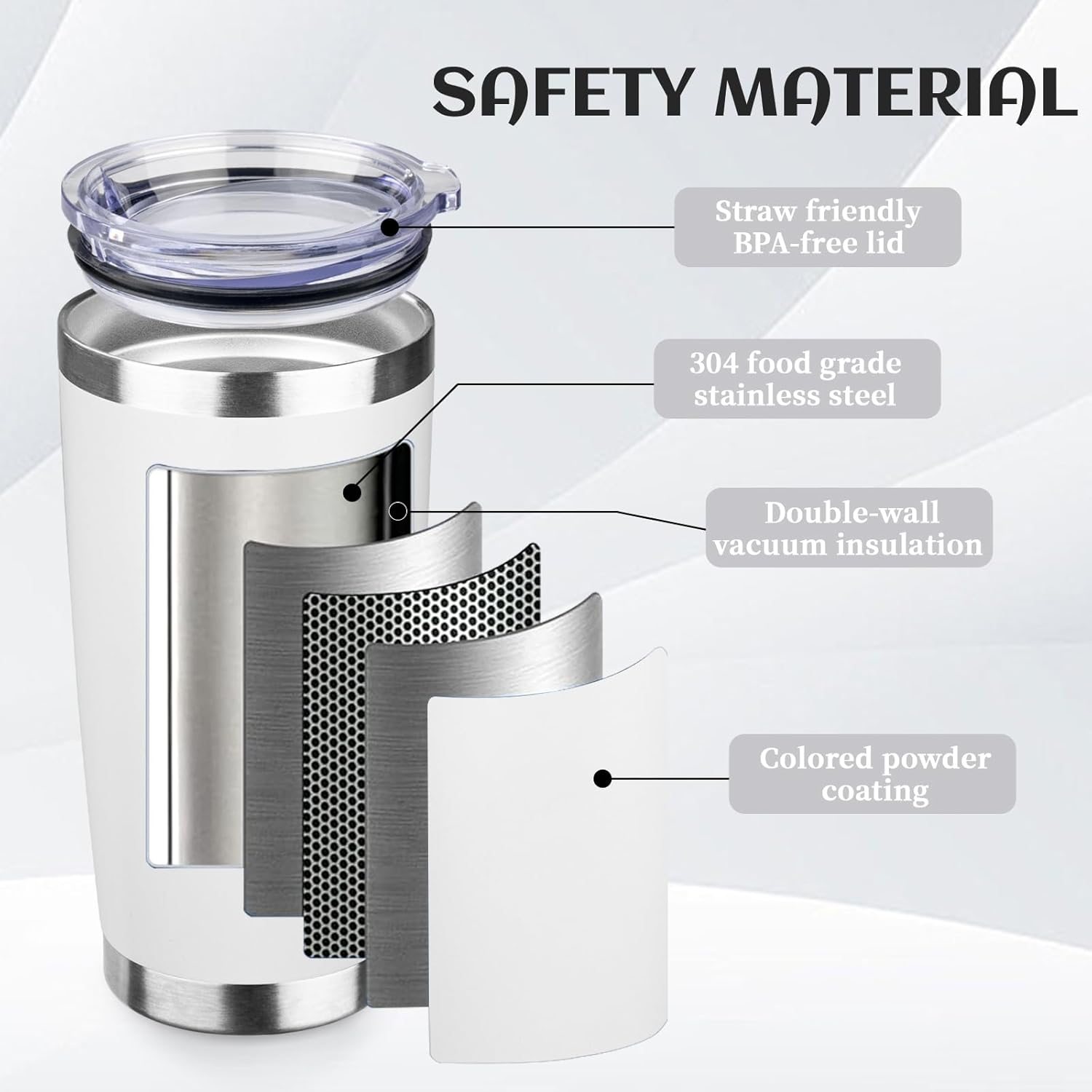 - Premium Material: 20oz Insulated tumblers are made of 304 food grade stainless steel with powder coating that won't fade, peel,and also provide additional grip to the exterior. Do not recommend washing in the dishwasher