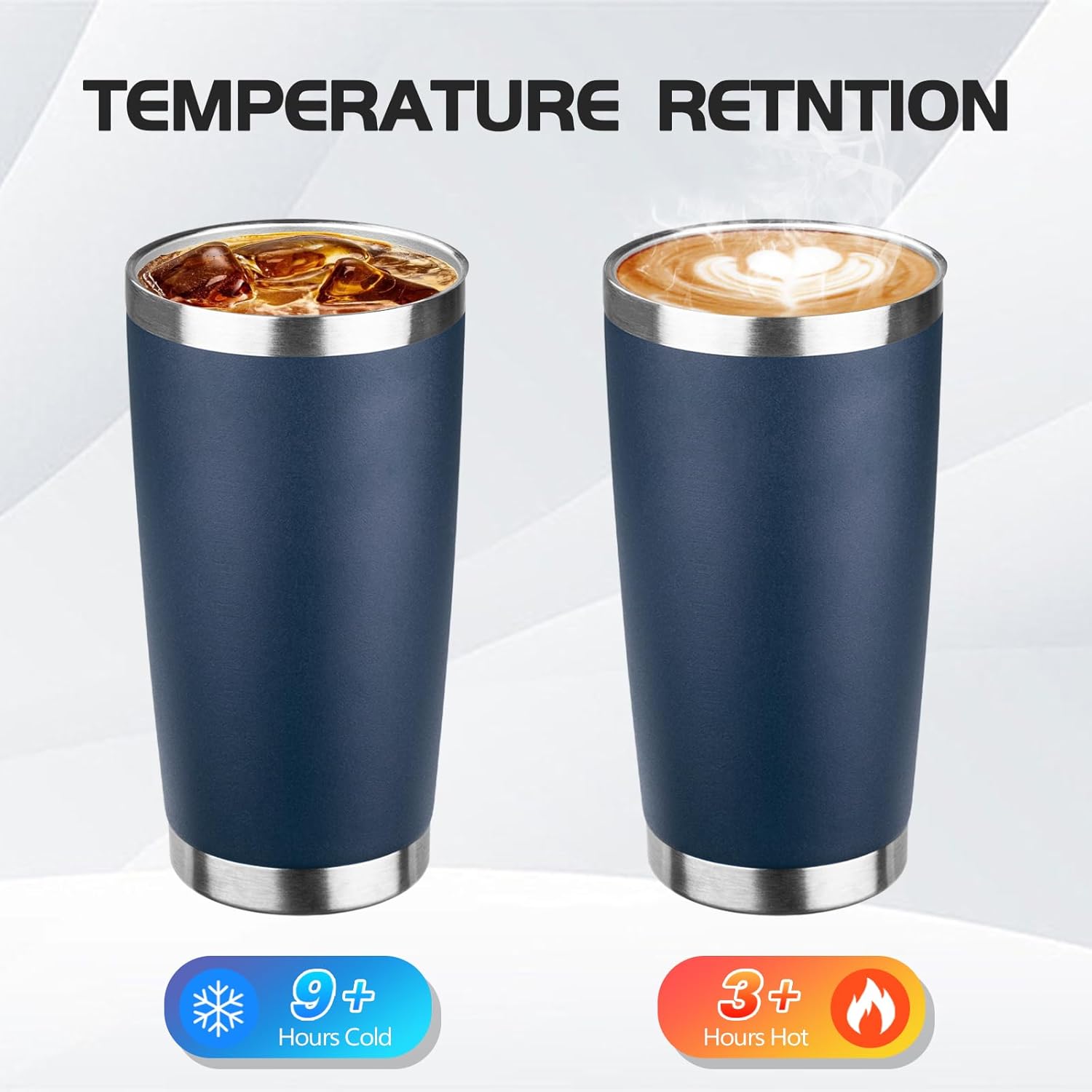 StarSpeed 20oz Tumbler Bulk with Lid, Stainless Steel Insulated Tumblers Double Wall Vacuum Insulated Travel Mug, Powder Coated Coffee Cups for Hot and Cold Drinks(Navy Blue,6)