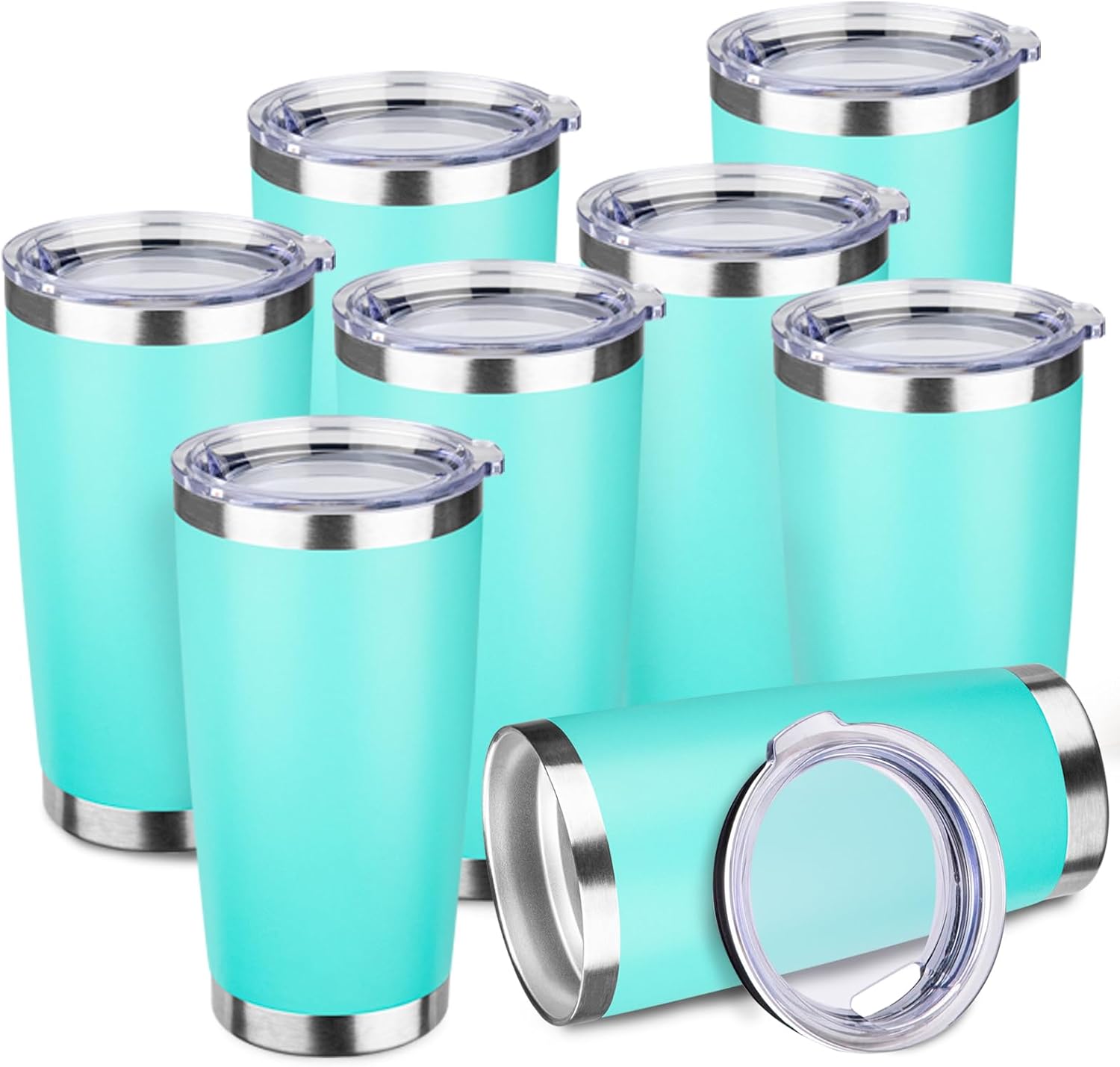 StarSpeed 20oz Tumbler Bulk with Lid, Stainless Steel Insulated Tumblers Double Wall Vacuum Insulated Travel Mug, Powder Coated Coffee Cups for Hot and Cold Drinks(Light Green,8)