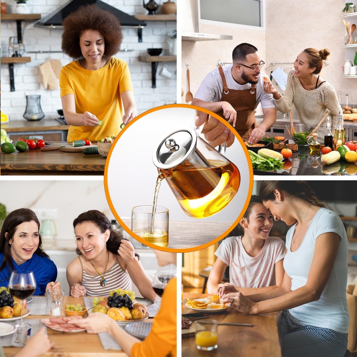 - 【SAFE TEAPOT】: glass tea kettle for gas stove top,This teapot kettle is made with borosilicate glass.Heat-resistance from -20 to 150 degrees Celsius. your tea infusion will be of no harmful chemicals, plastic leaching and aftertaste. The tea pot is stovetop safe, microwavable and dishwasher safe.