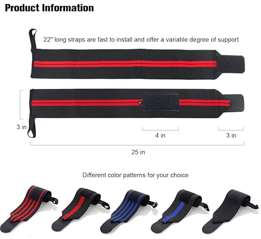 - 【Adjustable Strength】 Our gym straps are strength adjustable, 22" long wrist support straps are fast to install and offer a variable degree of support depending on how tight you wrap them, allow you to control the level of tension you desire. Lifting wrist wraps adopt self-adhesive design, adjustable, strong adhesion, these wrist straps can be adjusted for a secure and comfortable fit.