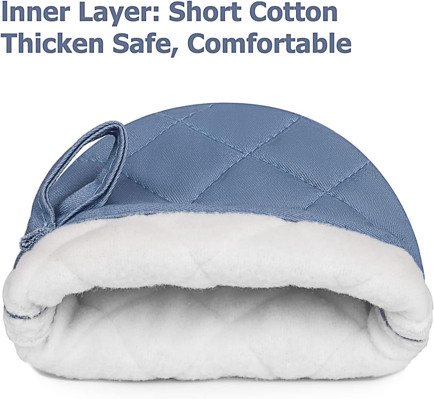 - PROTECT YOUR HANDS: These pot holder has 2-layer, with soft inner. They will protect your hands from heat, steam and grease. These mitts measure 6.8 inches x 5.3 inches, perfect for small hands.