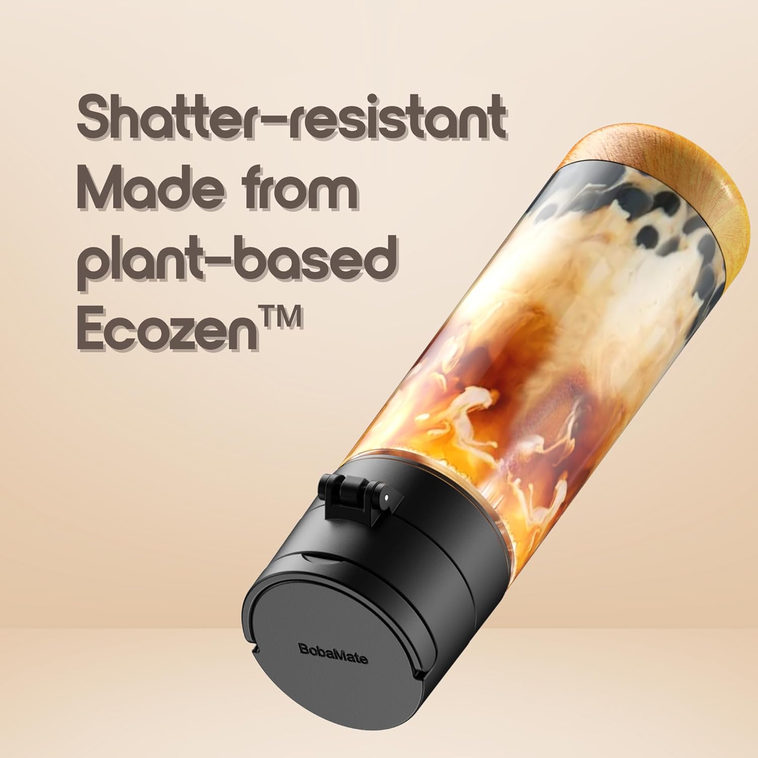 - ✅ SHATTER-RESISTANT & ECO-FRIENDLY – Crafted from BPA-free plant-based Ecozen, this reusable boba tumbler is built to last. It mimics the sleek look of glass but resists cracks and breaks—perfect for daily use while reducing plastic waste.