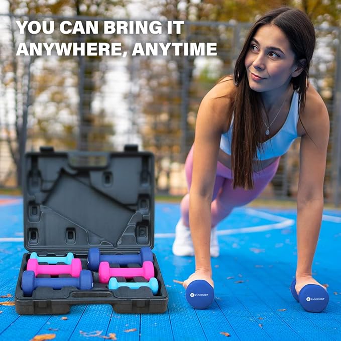Gymenist Dumbbell Set With Hard Plastic Case Includes 3 Pairs And A Hard Travel Carry Storage Case