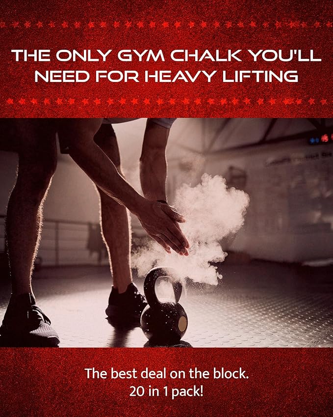 - 20 BLOCK VALUE PACK - Each individually wrapped workout chalk block weighs 0.125 lb, is solidly packed (3.5 x 1.8 x 3.5 inch each), and sold in bulk to provide the traction you need to save on your workouts and your wallet.