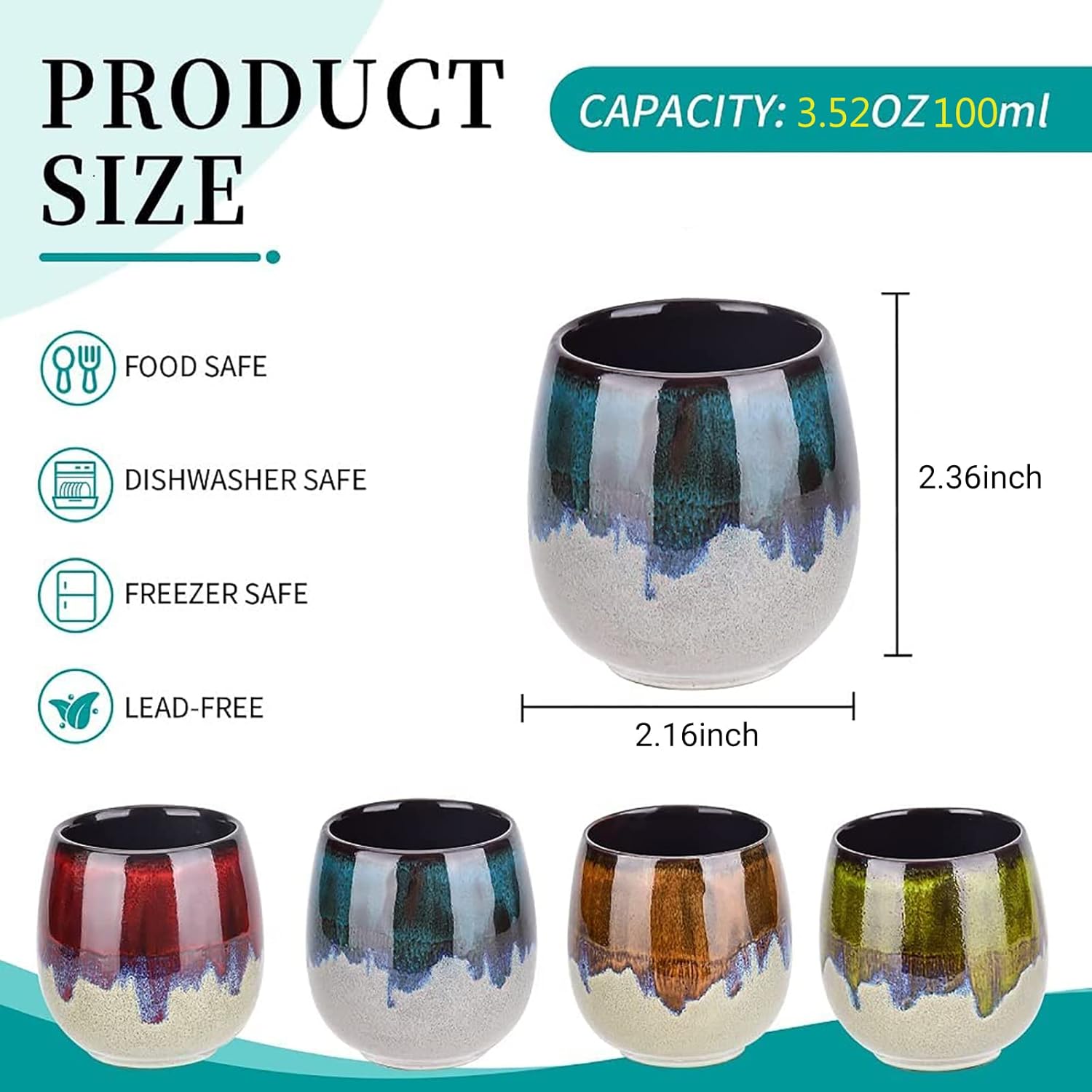 - Each specification: height 6cm/2.36in, the widest part of the cup is 5.5cm/2.16in. Capacity: full cup is 100ml/3.52oz,Can be used for hot and cold drinks, can be heated in a microwave oven, can be washed in a dishwasher, durable.