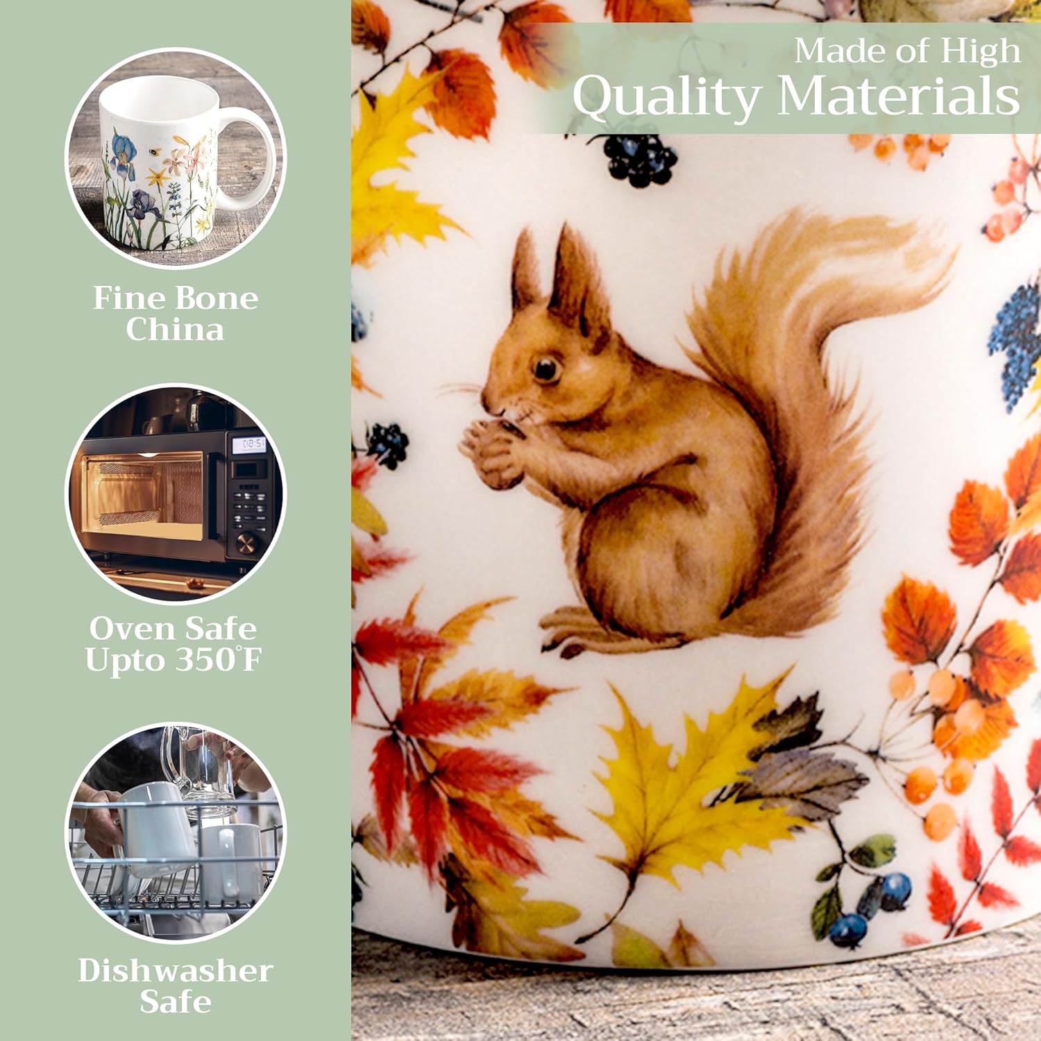 Maison d' Hermine Coffee Mug with Handles Fine Bone China Mugs Pack of One Tea Cups for Hot Beverages Cappuccino Latte Home Restaurant Office Perfect for Gift (Sous-Bois - Foret, 15 Ounce)