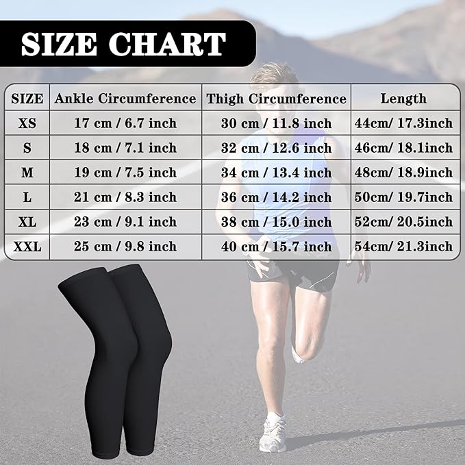 - Practical outdoor sport sleeve: compression full leg sleeves are designed to help you get the support you need to be comfortable day and night, helping you prevent pain such as leg pain, tibial splints, leg pinching, muscle soreness, fatigue, swelling, varicose veins and spider veins, etc, Note: please check the size list carefully before buying; The leg sleeve material is elastic; If you want more compress, you can buy a smaller size