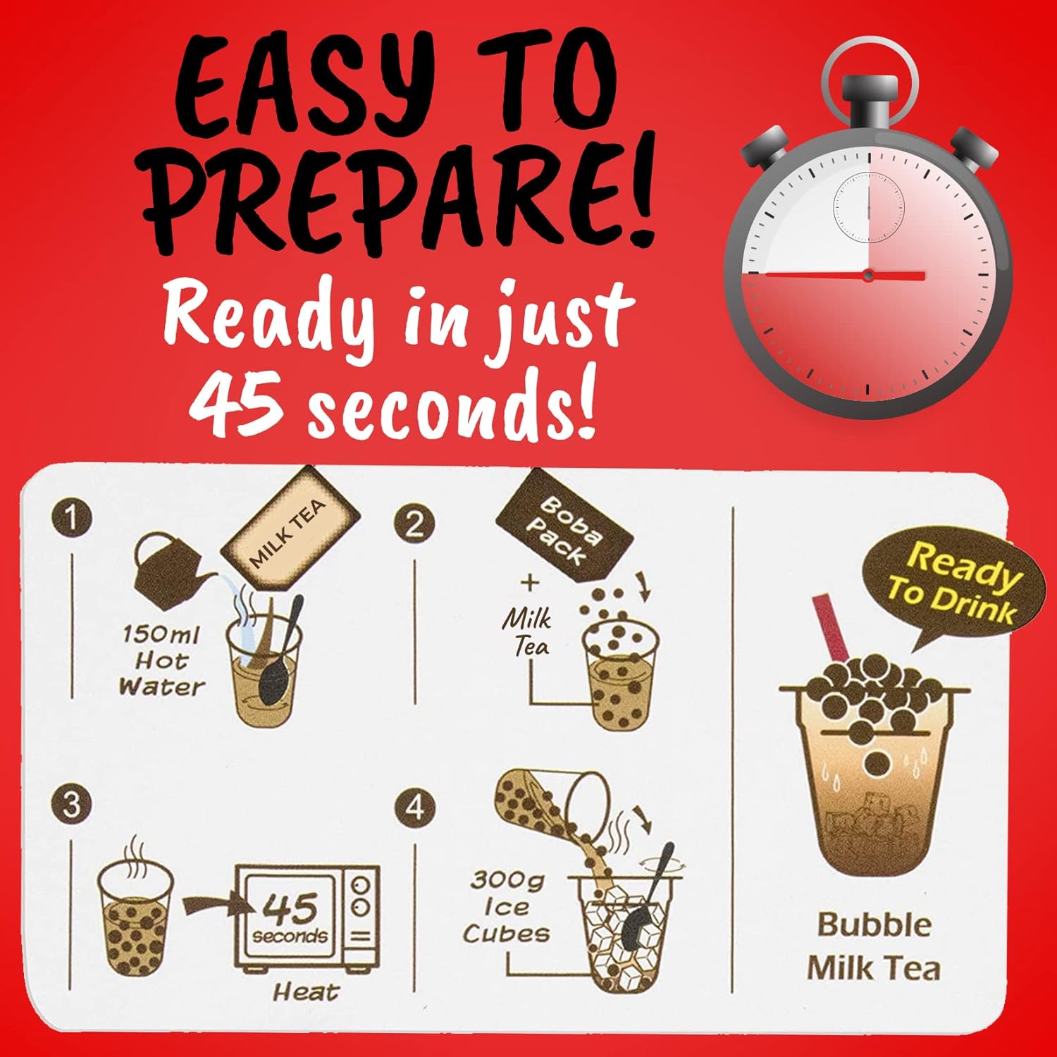 - ✅ READY IN 45 SECONDS - Get your milk tea fix in less than one minute with our creamy instant boba milk tea that's ready to drink in 45 seconds. You no longer need to go out to enjoy your favorite drink!