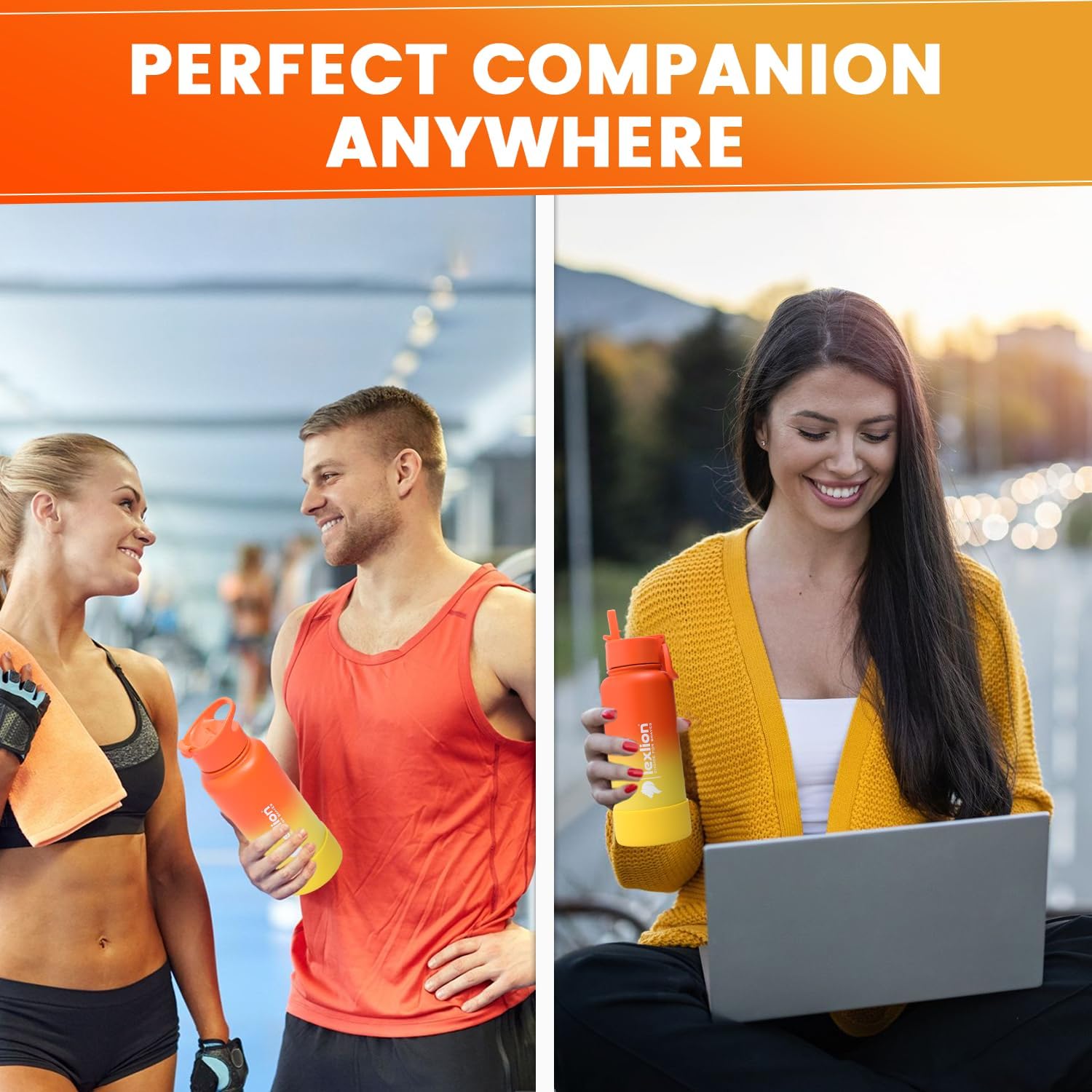- ✅ LIDS & INFUSER/STRAINER- Lexlion water bottle 32 oz comes W/3 LIDS! a spout lid, a flip lid & and a third lid which is straw lid ( for new version) or stainless steel lid ( for old version), 100% leak-proof & dishwasher safe. It includes a newly designed 2-piece strainer stainless steel, a very convenient filter to make loose tea leaves, cold coffee brews, herbs, or fruit-infused water. Add them to the filter basket, close it & clip in with water. If an infuser is not needed, remove it.