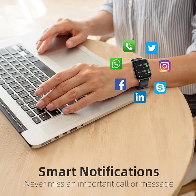 - 【24/7 Heart Rate & Blood Oxygen & Sleep Monitoring】The fitness tracker accurately monitor your heart rate, blood oxygen to help you better understand your health and making a reasonable adjustment to your lifestyle. In addition, the smart watch can detect your sleep status (deep, light, awake) in real-time, provides suggestions and comprehensive analysis via the APP to help you develop a healthier lifestyle.