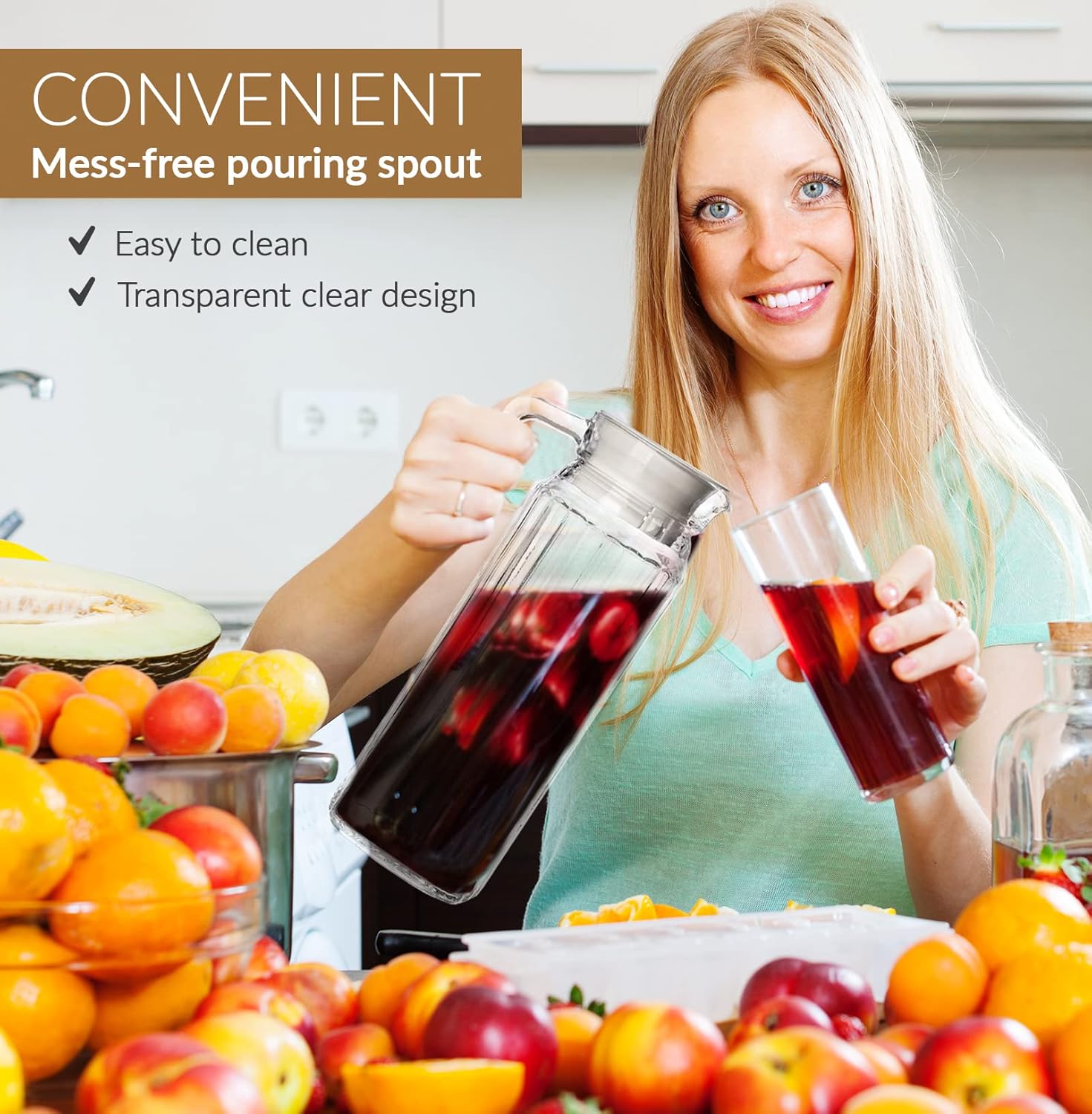 - Whether you’re a fan of those refreshing lemonades, orangeade, cocktails, margaritas, iced tea, iced coffee, sangria, milk, this drink pitcher will come in handy for a wide variety of uses!