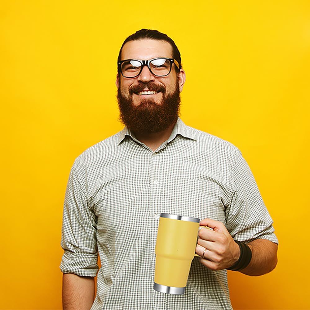 - Colored Powder Coated Tumbler: The stainless steel coffee mug is crafted with stylish color powder coating, gives you multiple color options. It's cool to touch when filling with hot water and also sweat proof with cold water, always keep your hands comfortable while holding the coffee travel mug with handle