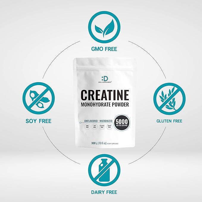 - The most efficient monohydrate form that supports muscle contractions, energy production, and lean muscle mass maintenance. Deal Supplement’s creatine offers 300g of this powerful performance supplement with 60 servings of a 5000mg dose. The micronized particles are broken down into a fine powder so you can mix it or combine it with other workout supplements for top level training.