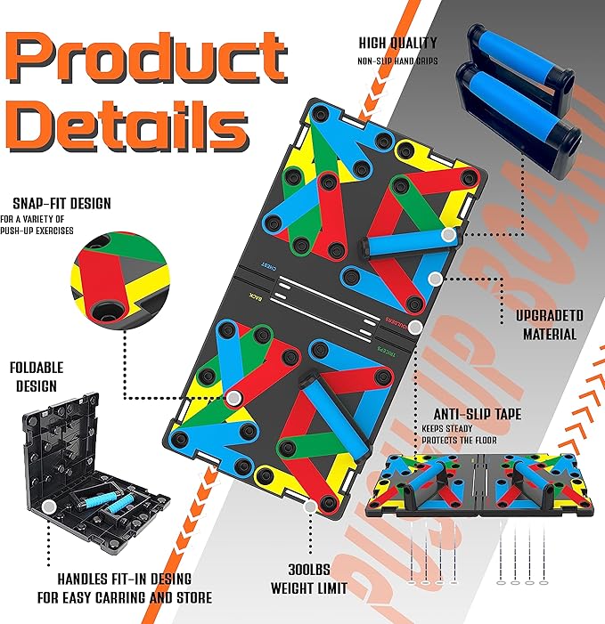 - Anytime, Anywhere: Lightweight, collapsible push-up board that can be used at home, outdoors, in the office or at the gym. stays stable on any surface