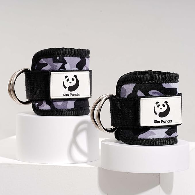 Slim Panda Ankle Strap for Cable Machine,Ankle Cuff for Kickbacks, Booty Hip Abductors,Glute Workouts, Leg Extensions, Curls for Men and Women, Adjustable with Double D-Rings