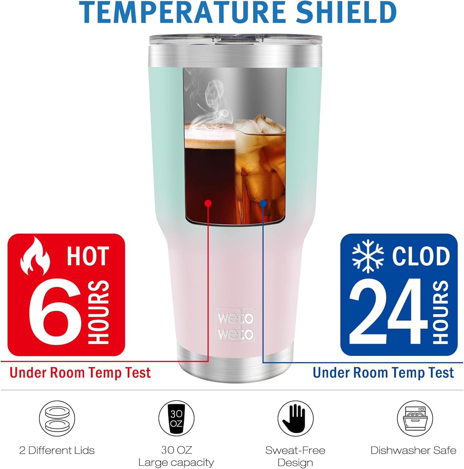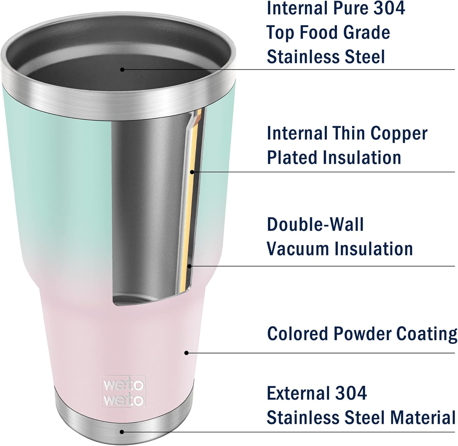 WETOWETO 30oz Tumbler, Stainless Steel Vacuum Insulated Water Coffee Tumbler Cup, Double Wall Powder Coated Spill-Proof Travel Mug Thermal Cup for Home Outdoor (Green-Pink Gradient, 1 Pack)