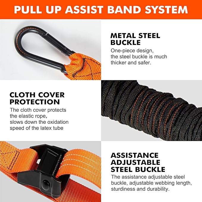 - New Upgraded Multifunctional Accessories: The patented pull-up helper band set is equipped with adjustable straps, 3 elastic bands, and 2 sponge pad sling hanging. You can achieve the purpose of exercising the whole body according to different combinations.