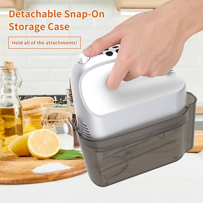 9-Speed Digital Hand Mixer Electric, 400W Powerful DC Motor, Baking Mixer Handheld with Snap-On Storage Case, 5 Stainless Steel Accessories, Flat Beaters, Dough Hooks, Whisk (Silvery & White)