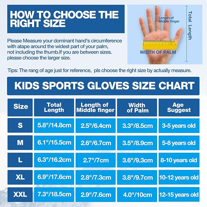 • Anti-slip Palm and Reflective Stripes for Safety: The palm and fingertips are added anti-slip silica gel to enable effective griping. Great for cold weather soccer games baseball bat gripping. And there are reflective stripes on this kids cycling gloves, which can be a caution mark for passersby or cars at night or in darker places. Provide more safeguard to your dear little ones.