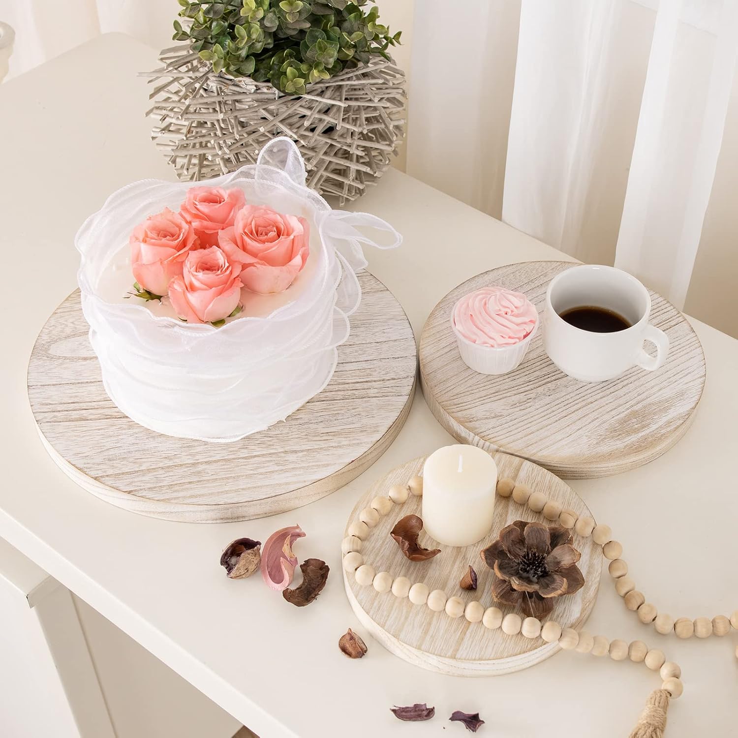 - Exquisite Small Round Legs Design : Exquisite Workmanship, each wooden cake stands with 3 rounded legs Each shelf has been carefully crafted to ensure stable placement on the tabletop,It’s reliable and safe to use bringing your cake,cupcake ,candle or crafts a delicate appearance