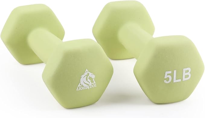 LIONSCOOL Set of 2 Neoprene Coated Dumbbell Hand Weights, Anti-Slip and Anti-Roll Hex Dumbbells in Pair for Strength Training, Resistance Training