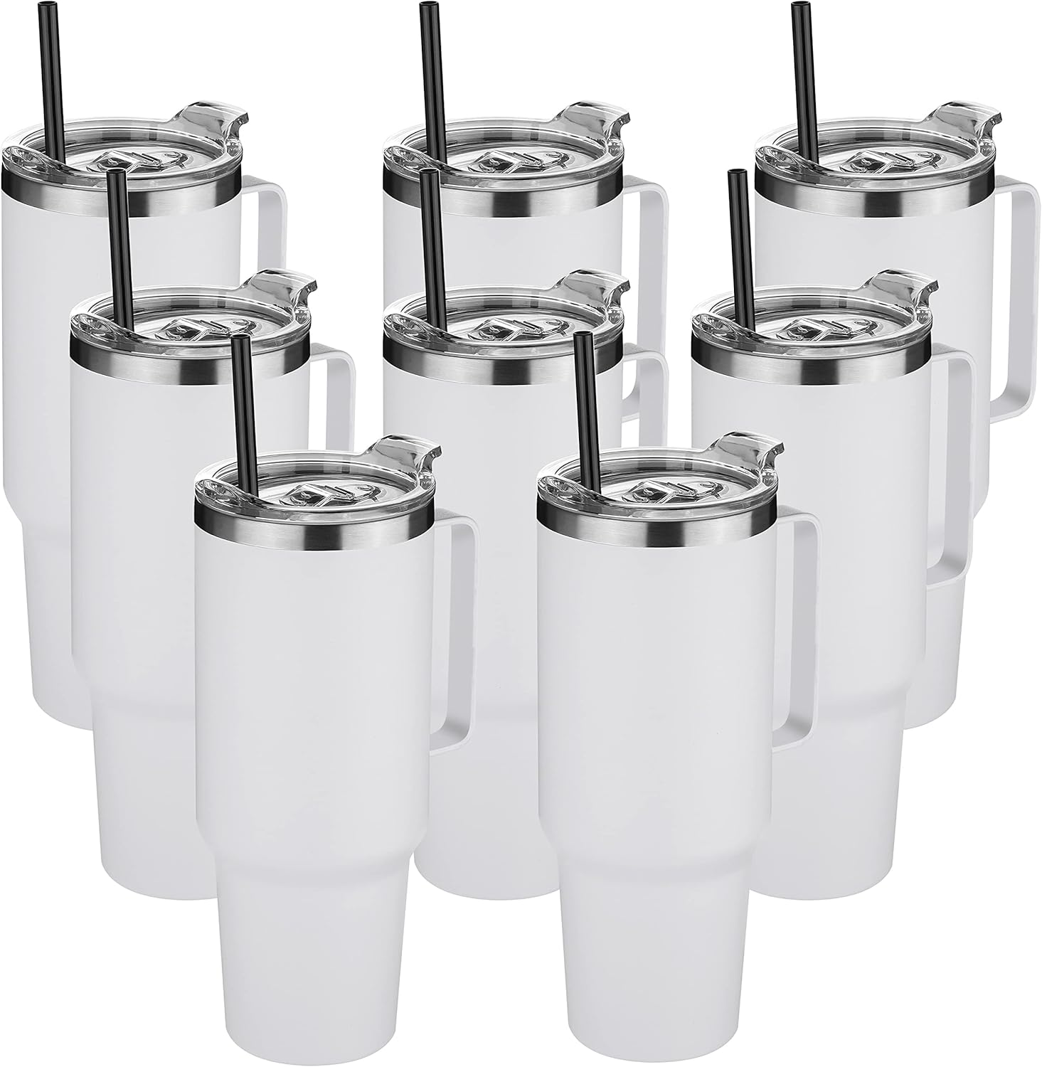HASLE OUTFITTERS 40 oz Stainless Steel Tumbler with Handle, Vacuum Insulated Tumblers Bulk, Reusable Double Wall Travel Coffee Mug, Durable Powder Coated Water Bottles(White, 8)