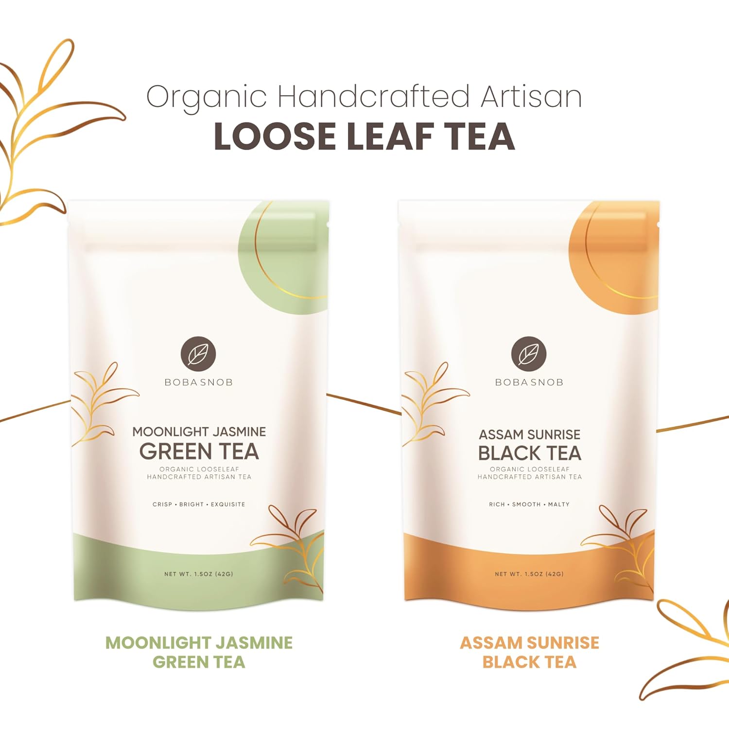- MAKE YOUR OWN CREATIONS: Enjoy an assortment of organic loose leaf teas you’ll love including rose oolong tea, jasmine green tea, roasted oolong tea, black tea, and earl grey tea, along with detailed instructions on how to make boba tea at home. Get creative and create your own tea blends; boba tea is not just a drink but an experience!