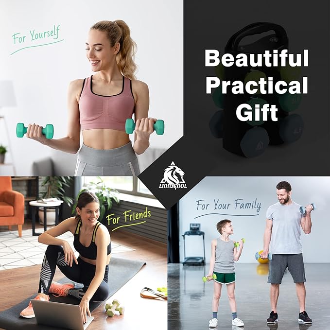LIONSCOOL Set of 2 Neoprene Coated Dumbbell Hand Weights, Anti-Slip and Anti-Roll Hex Dumbbells in Pair for Strength Training, Resistance Training
