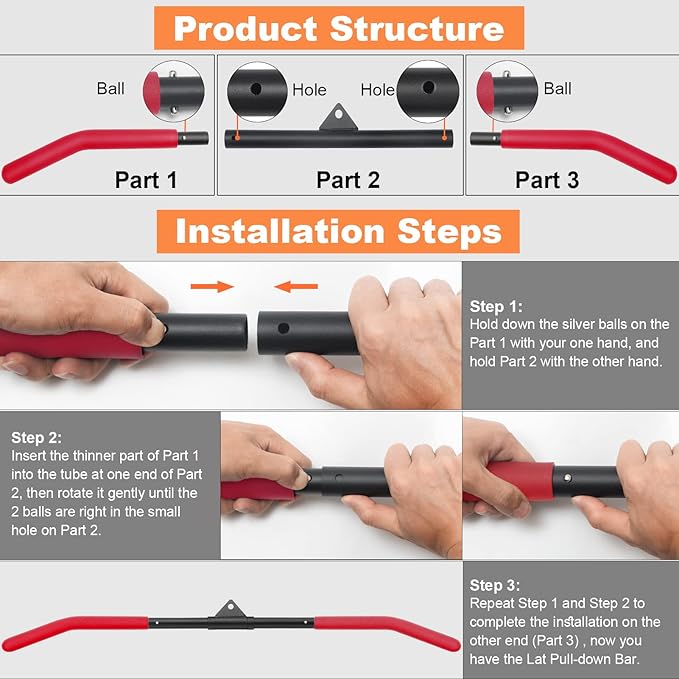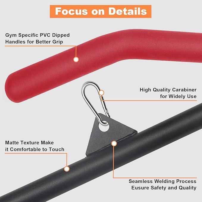 - 【What You Get】1 x 39.37 Inch lat bar, 1 x carabiner. The tricep press down Bar is detachable and can be easily assembled in minutes without any additional tools. Besides, all our products will be backed by our 12-month Free Replacement Warranty and support 7*24h Technology Service. Just feel free to contact us if you have any question.