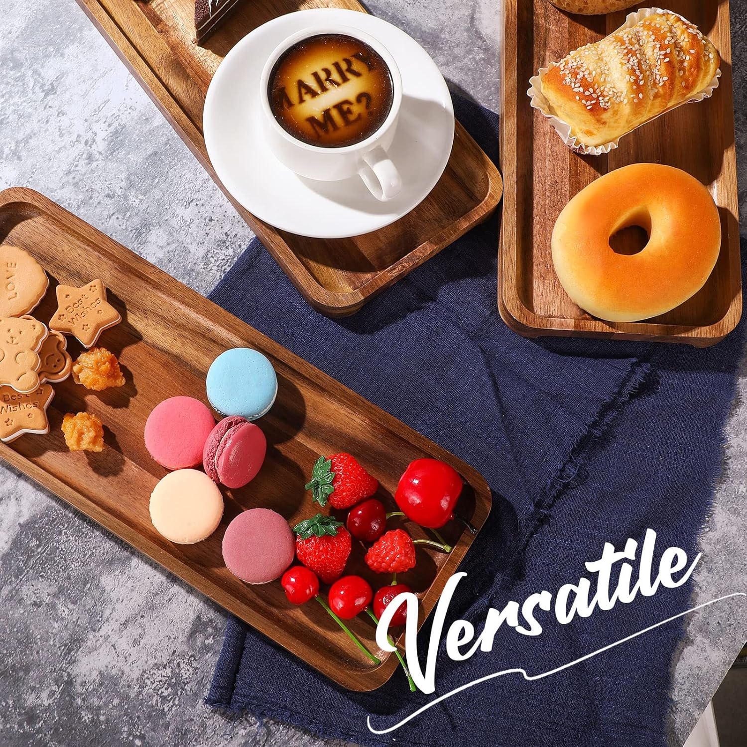 Roowest 5 Pack Solid Acacia Wood Serving Trays for Laser Engraving Rectangular Wooden Board for Food Appetizer Serving Tray Plates for Vegetables Fruit Cheese Housewarming Gifts(16 x 6.5 Inch)