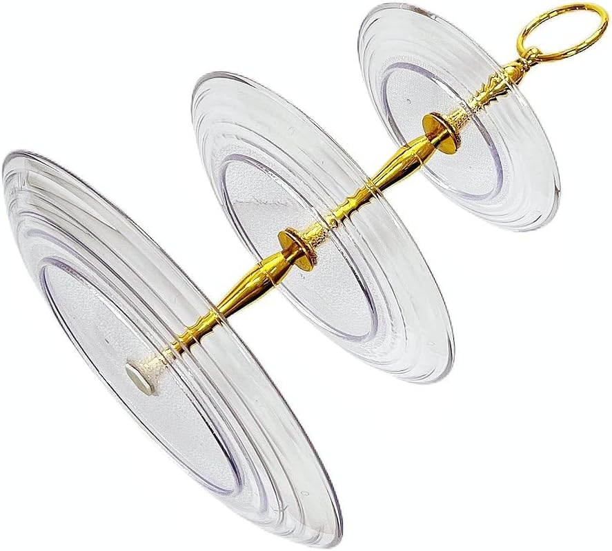 - The cupcake stand designs with 3-tier serving platters, not only can save space,put more snack desserts, but also make your table clean and tidy. And the unique pull ring bracket design shows charm, which can be carried and moved more conveniently
