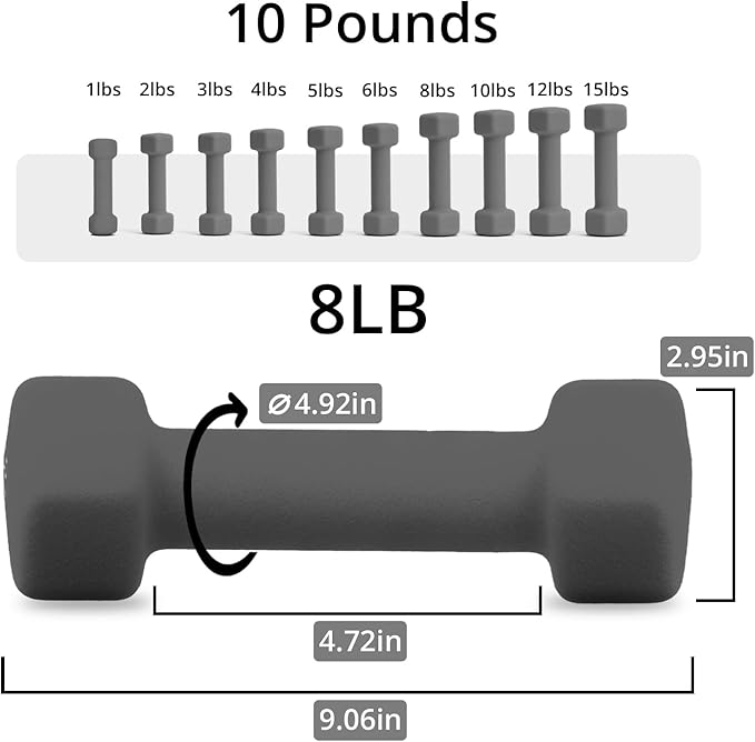 Portzon Weights Dumbbells 10 Colors Options Compatible with Set of 2 Neoprene Dumbbells Set,1-15 LB, Anti-Slip, Anti-roll, Hex Shape for Shoulder,Neck, and Hand Training for Seniors
