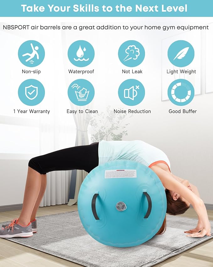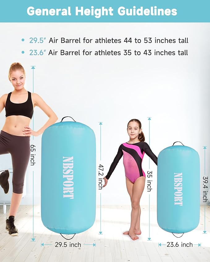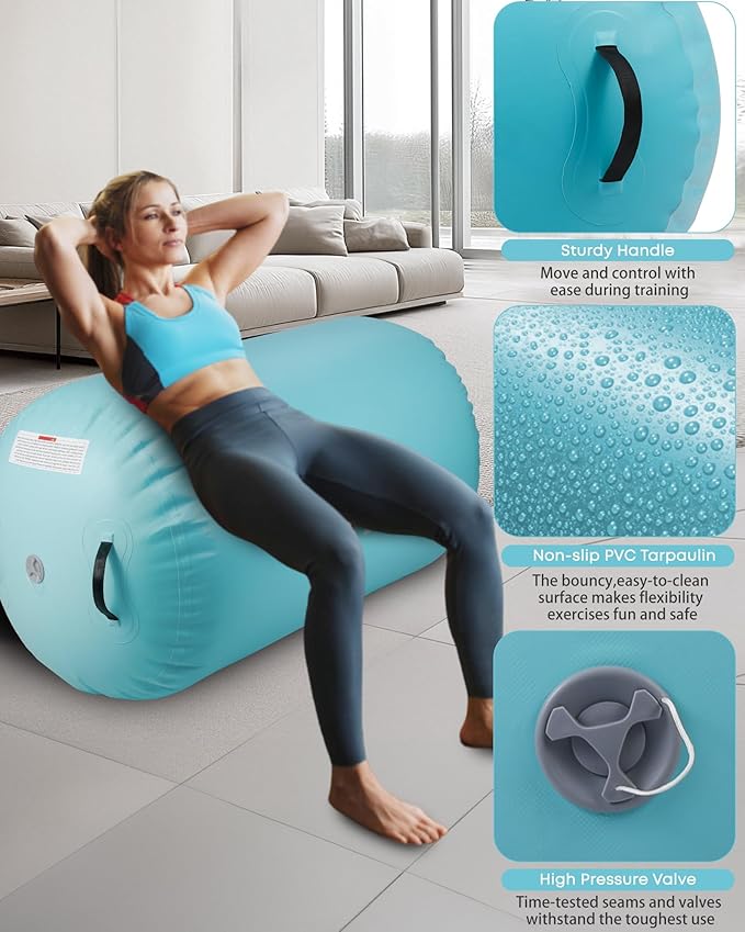 Air Barrel - Air Roller Gymnastics Barrel for Back Handspring Trainer, Air Track Tumble Mat with Pump for Gym Training/Yoga Balance Exercise/Cheerleading/Home and Outdoor Use